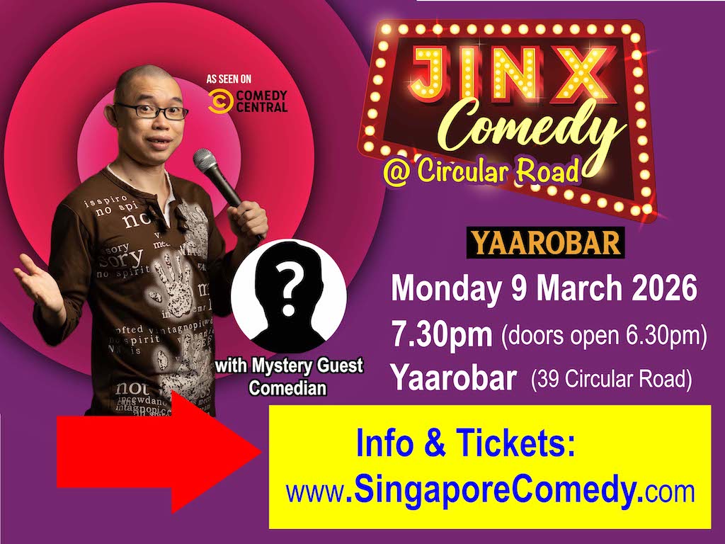 Stand-up comedy shows in SINGAPORE & HONG KONG , featuring Jinx Yeo (as seen on Comedy Central, ABC TV, Channel 5). With a hand-picked supporting lineup of rising comedy stars